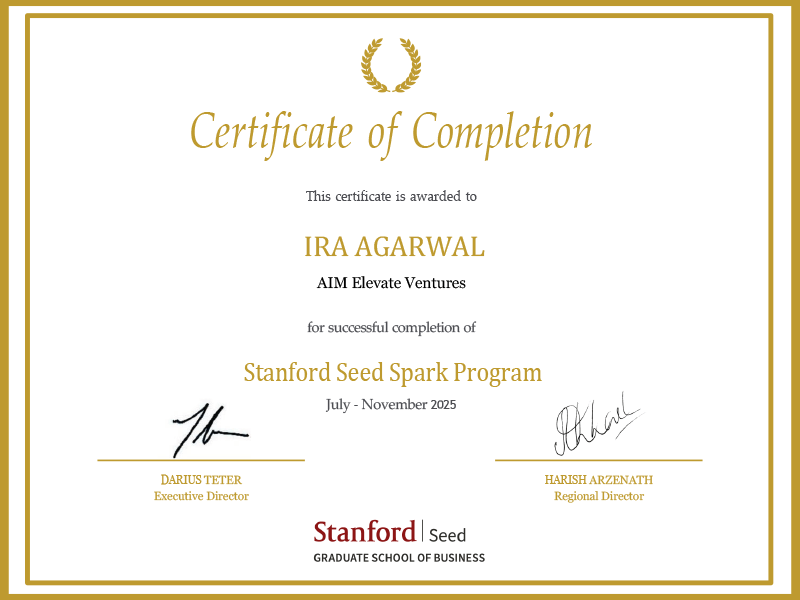 Her Academic & Intellectual Capital includes Wharton AMP 85 Distinguished Alumna, Certified Independent Director & ESG Impact Leader (IICA, Batch Topper), Board Effectiveness & Governance certification from Wharton, EY, and ISB, Advanced Human Centered AI from Stanford HAI and d.school, Duke LEAP Batch Topper, Stanford GSB Seed Spark alumna, Distinguished Computer Science Engineering Graduate and Honorary Doctorate awardee.